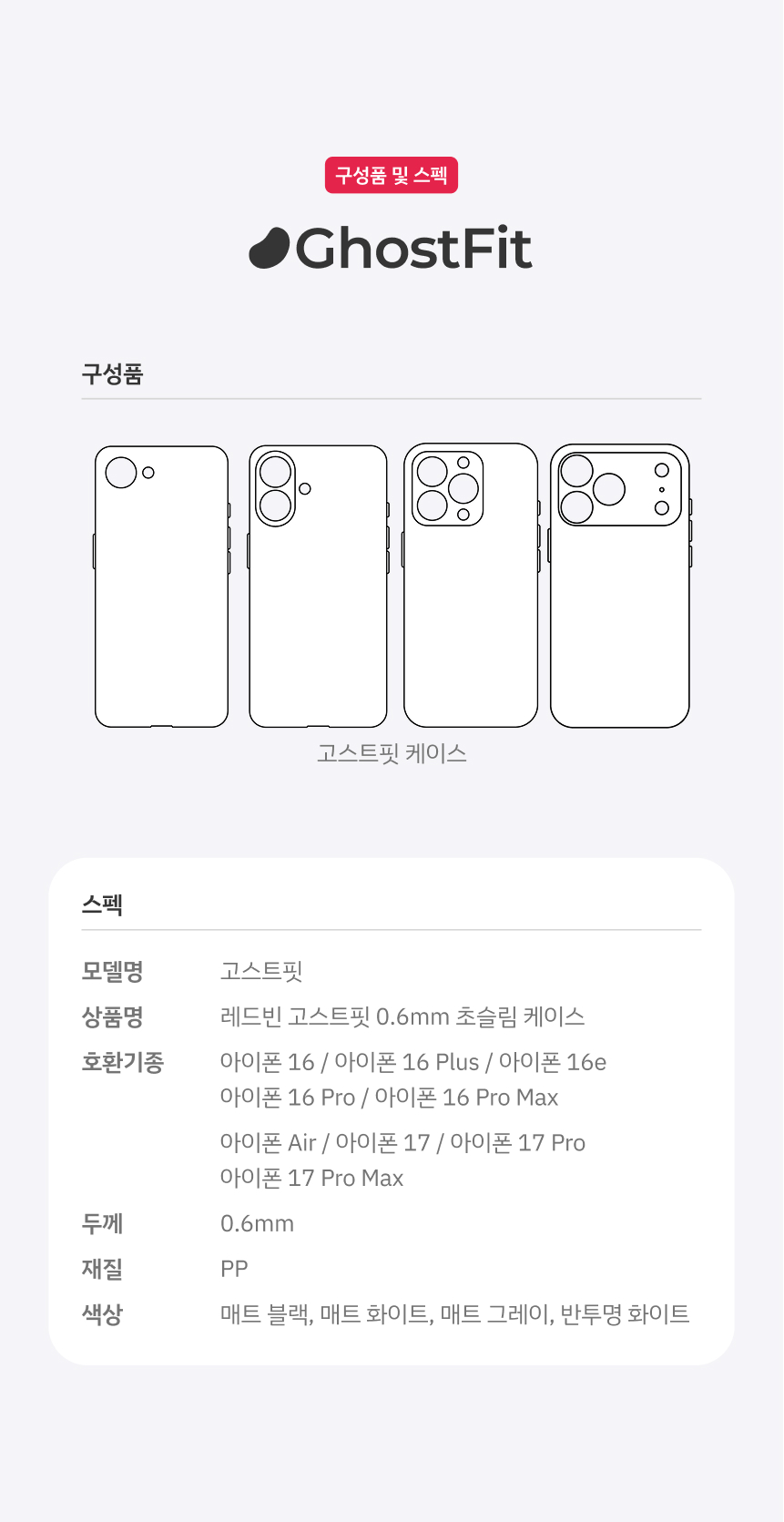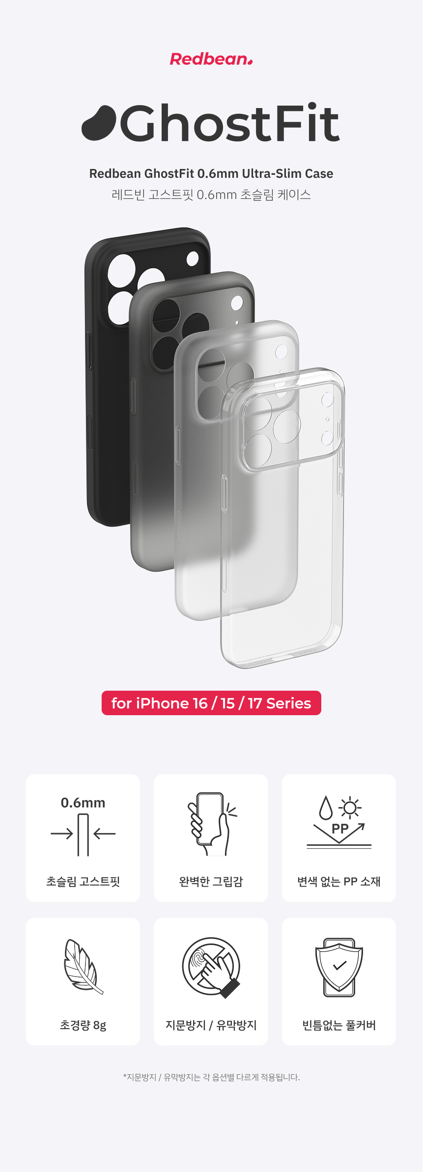 레드빈 고스트핏 0.6mm 초슬림 풀커버 핸드폰 케이스 아이폰17 16 프로맥스 프로 플러스 에어 e