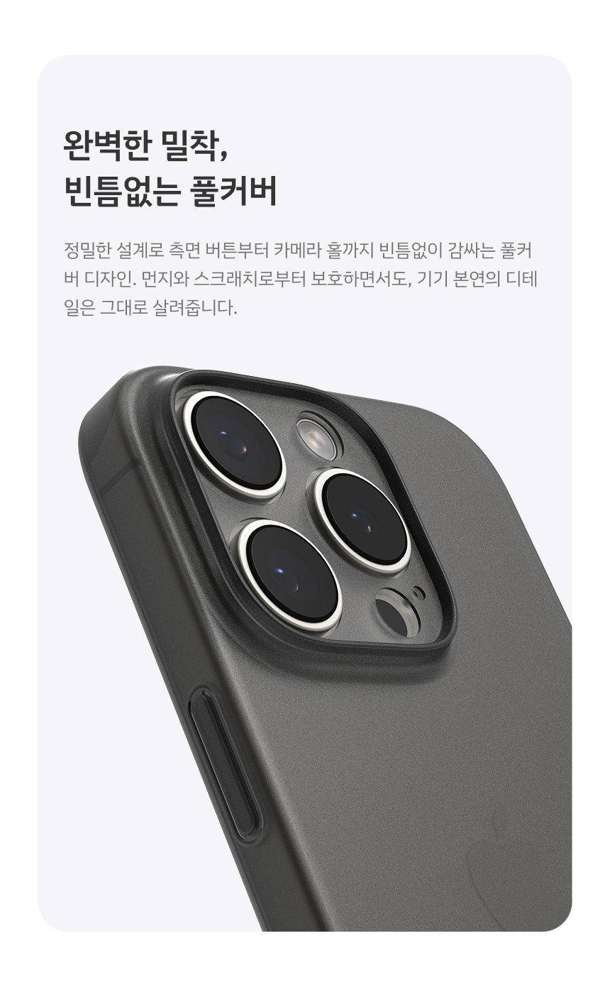 - 완벽한 밀착, 빈틈없는 풀커버: 카메라 홀까지 빈틈없이 감싸는 풀커버 디자인
