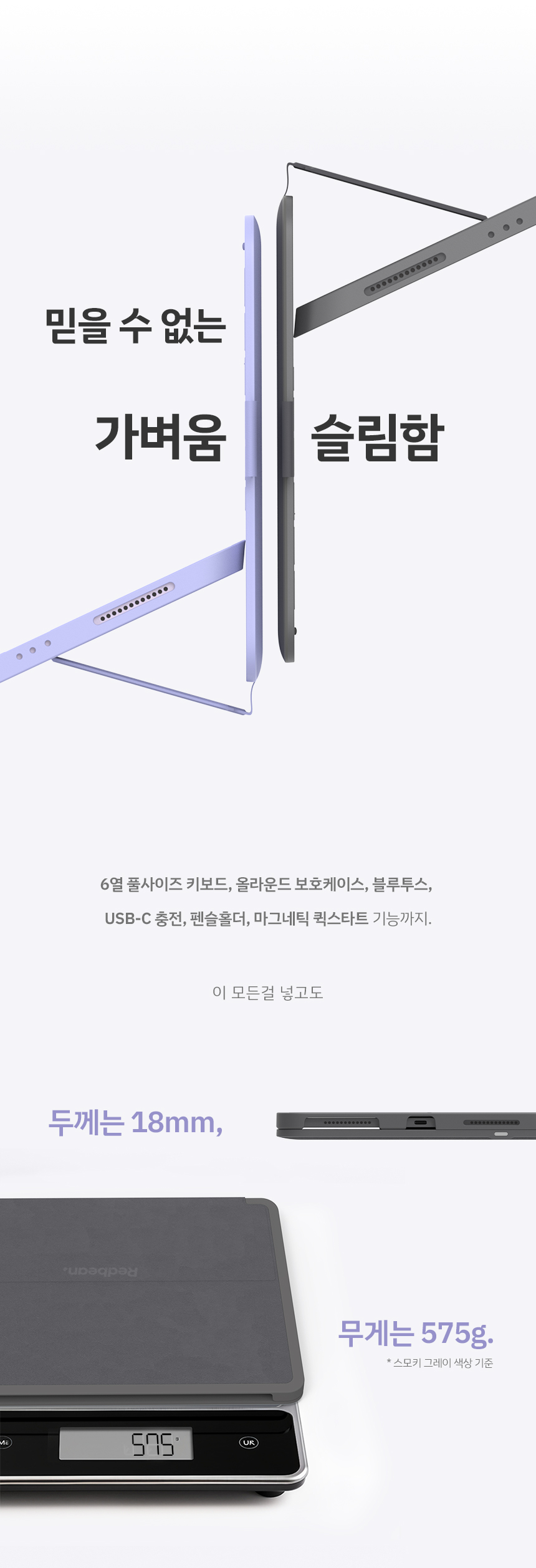 190.5x253.6x17.6mm / 스모키 그레이 456g / 미스티 바이올렛 468g