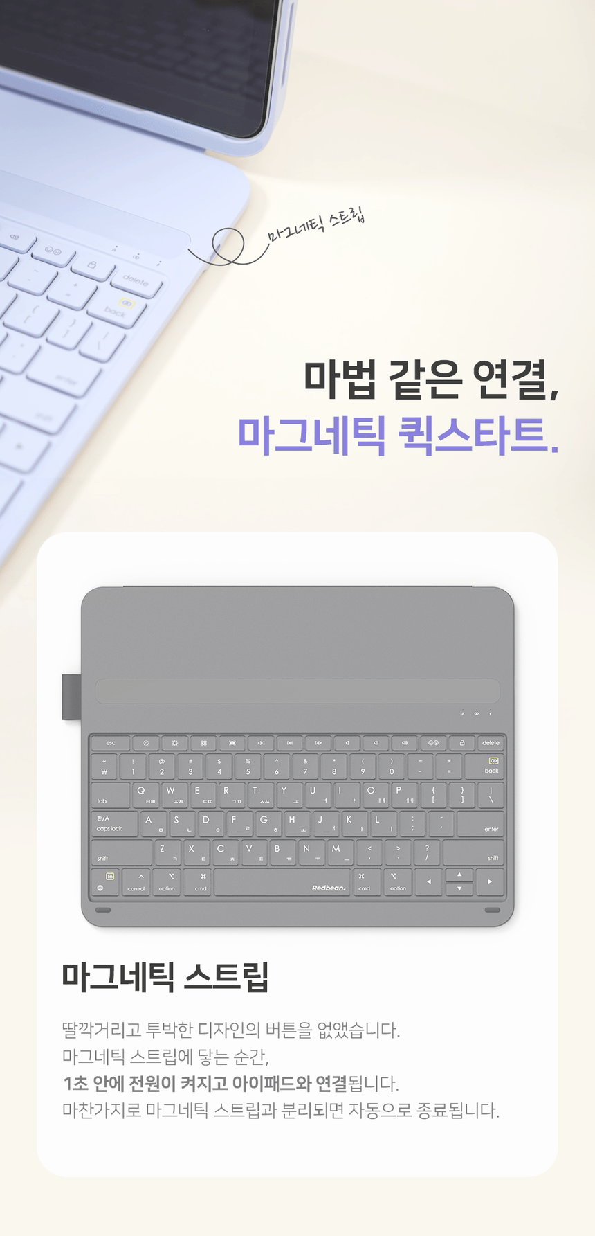- 닿는 순간 바로 부착되는 마그네틱 스트립, 1초 안에 연결되는 아이패드