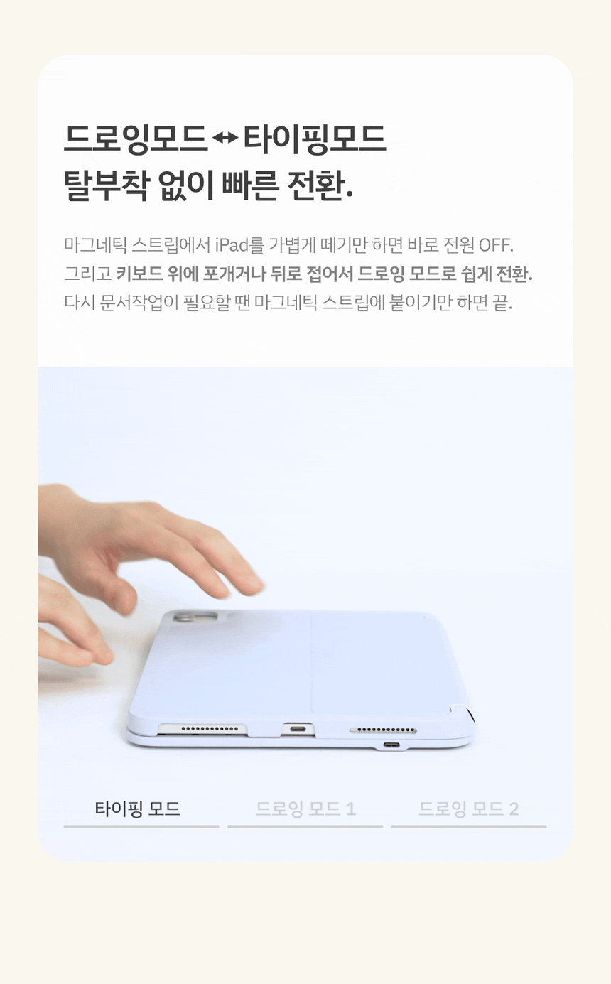 - 드로잉모드, 타이핑모드 탈부착 없이 빠른 모드 전환