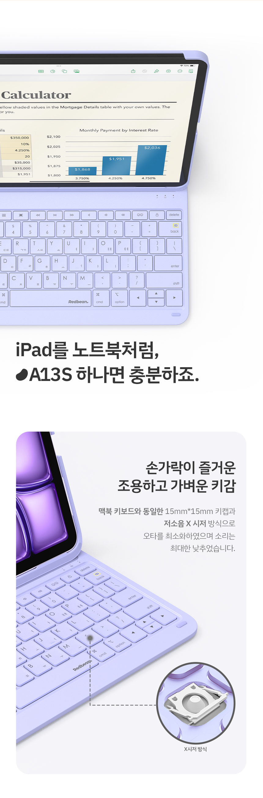 레드빈 아이패드 블루투스 무선 키보드 케이스 커버 A13S