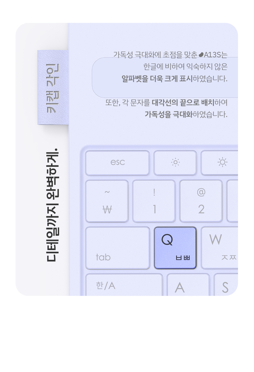 - 맥북 키보도와 사이즈의 키캡과 팬터그래프 저소음 X 시저 방식 채택