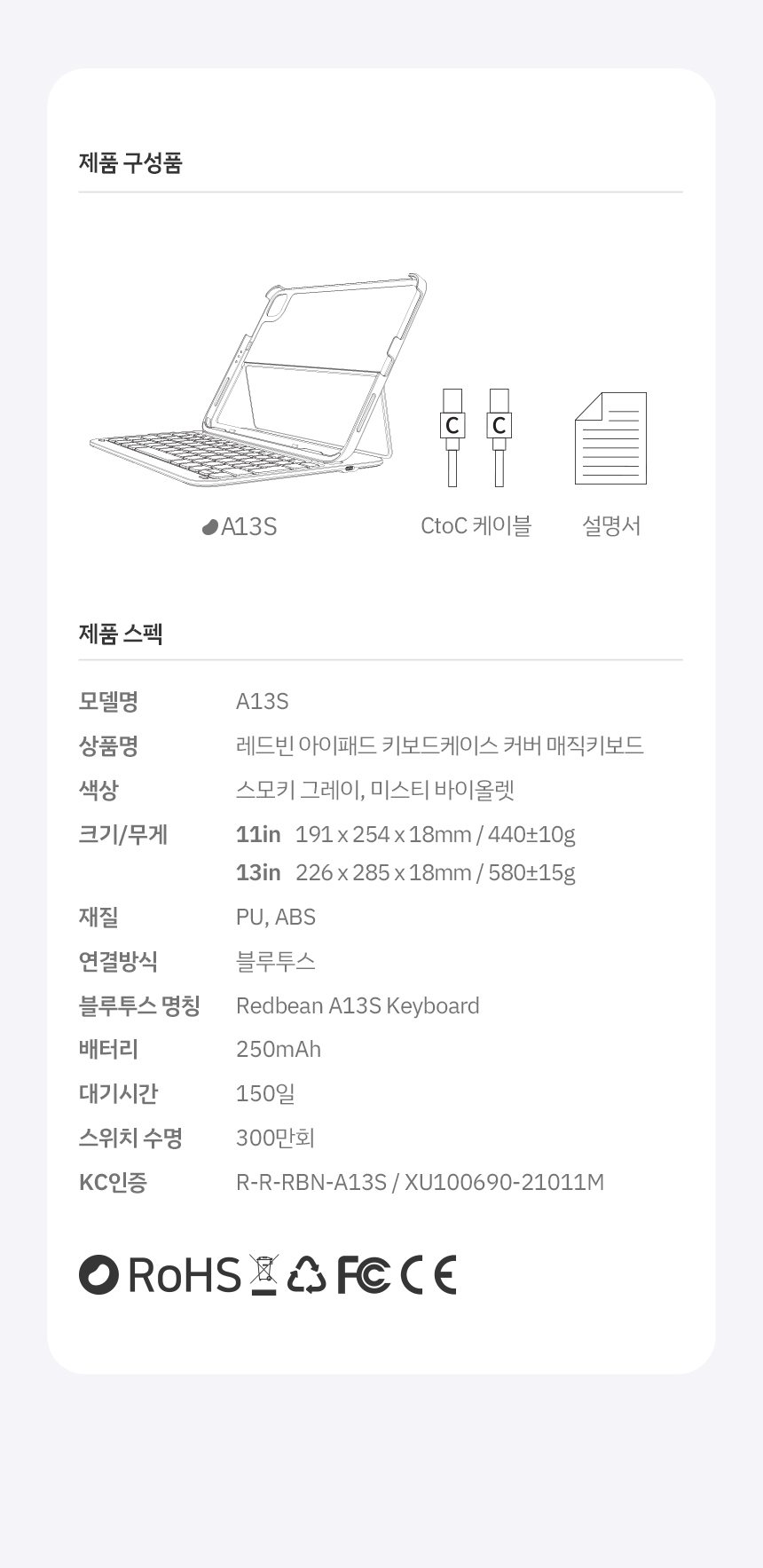 레드빈 아이패드 블루투스 무선 키보드 케이스 커버 매직키보드 / A13S