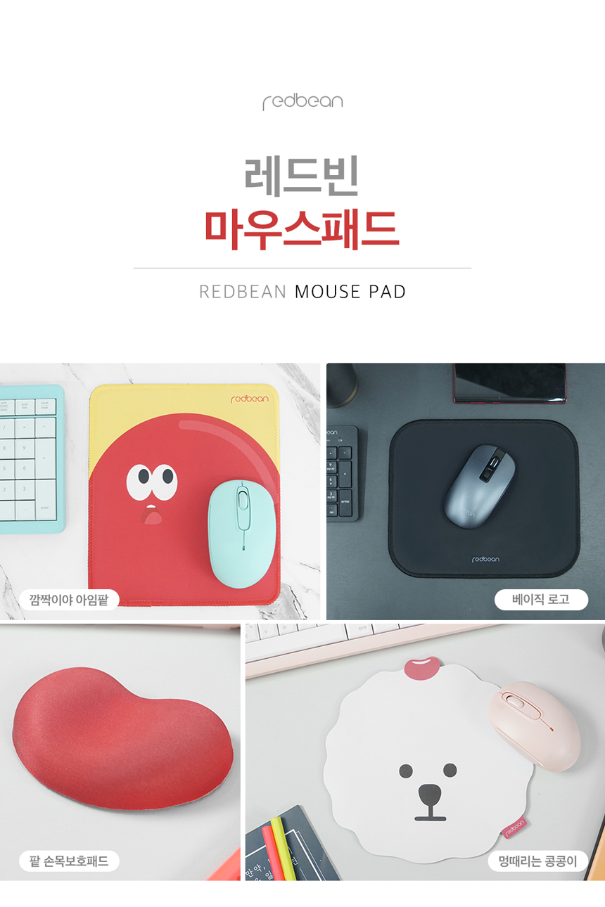 레드빈 베이직 캐릭터 마우스패드 손목보호쿠션 모음전