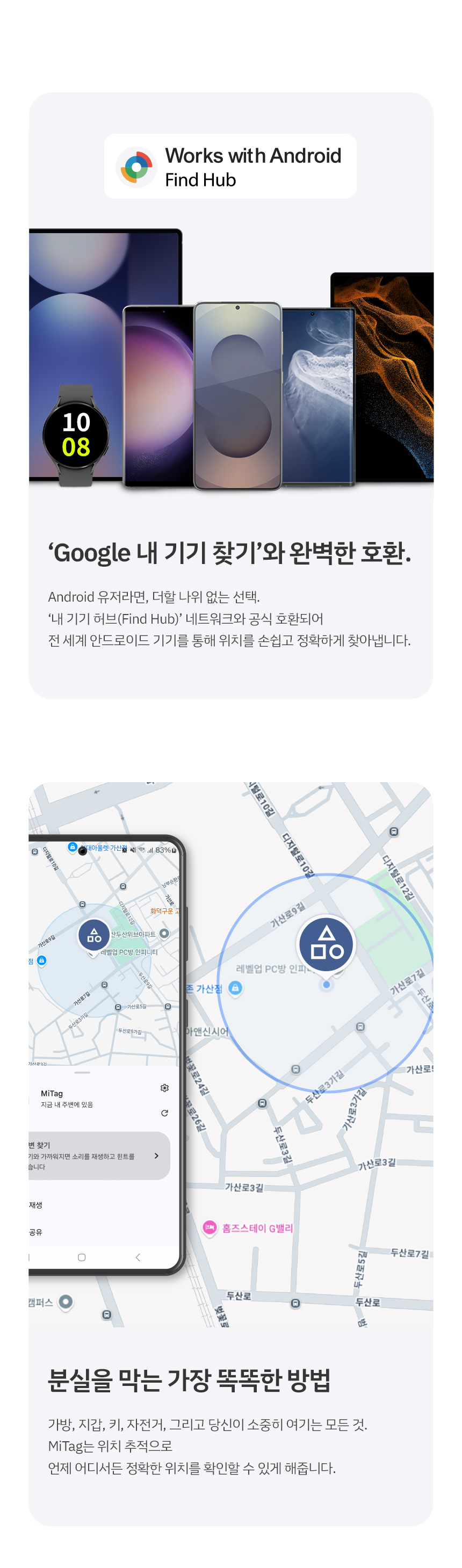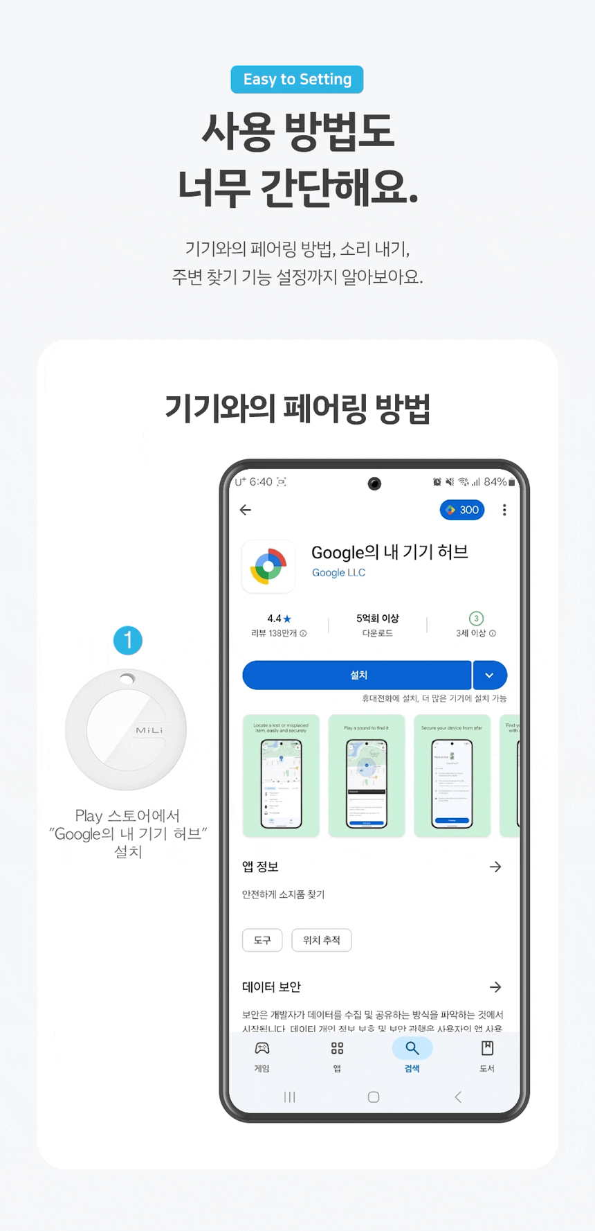 - 근처에 있을 땐 소리 알림으로 빠르게 찾기 가능