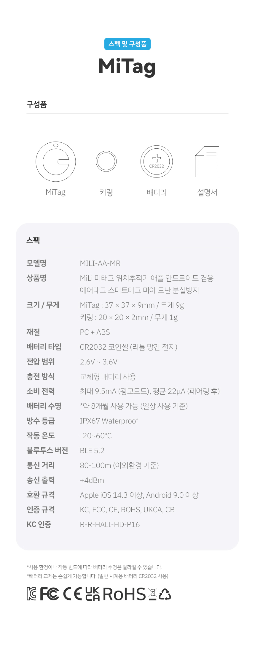 MiLi 스마트태그 위치추적기 듀얼모드 + 메탈링 / MILI-AAWT-MRSV