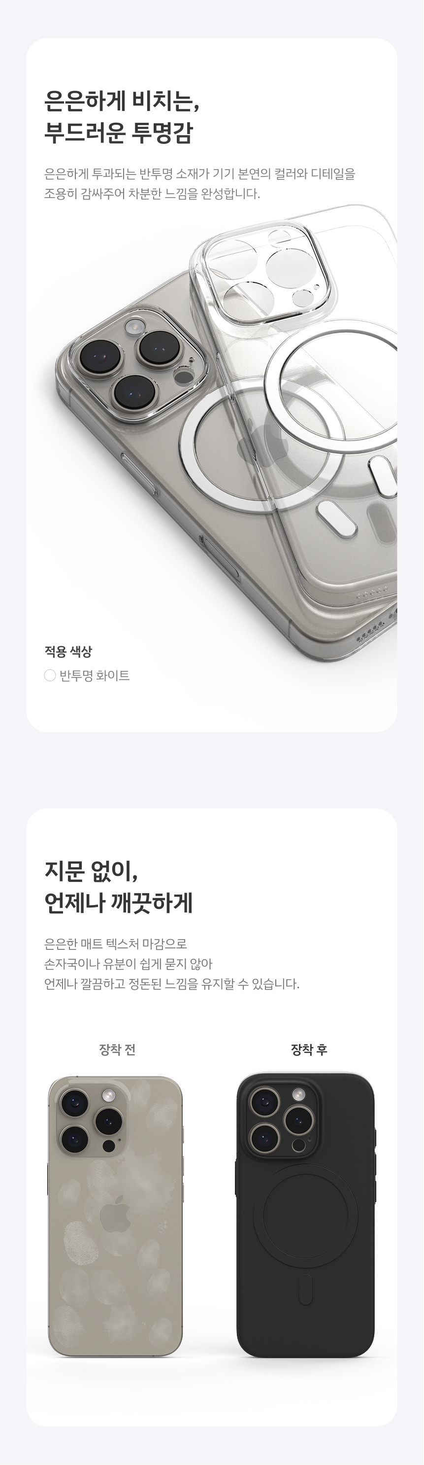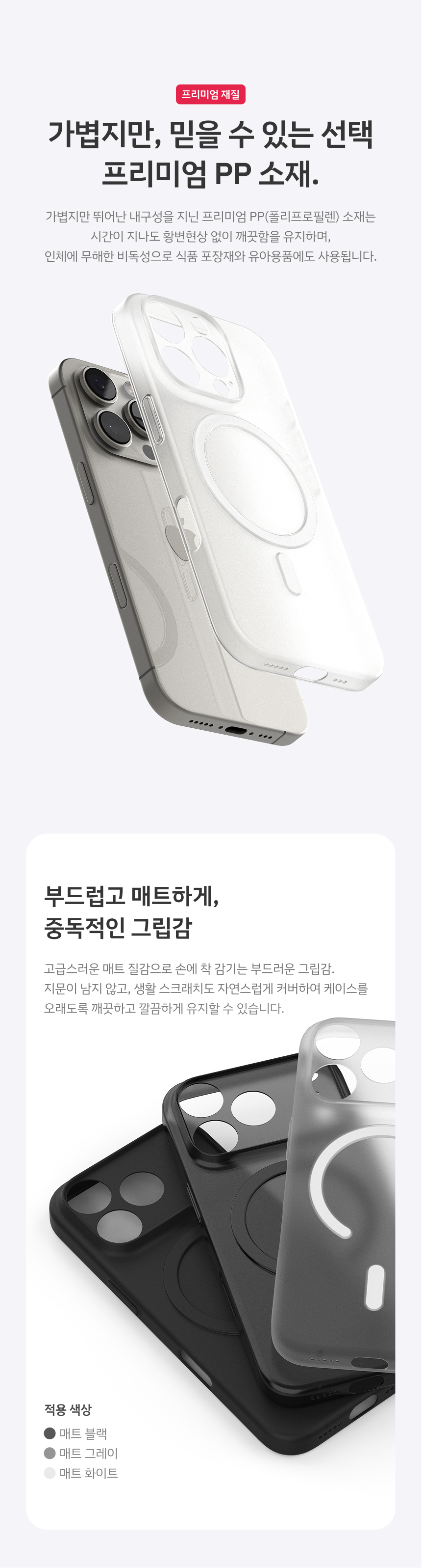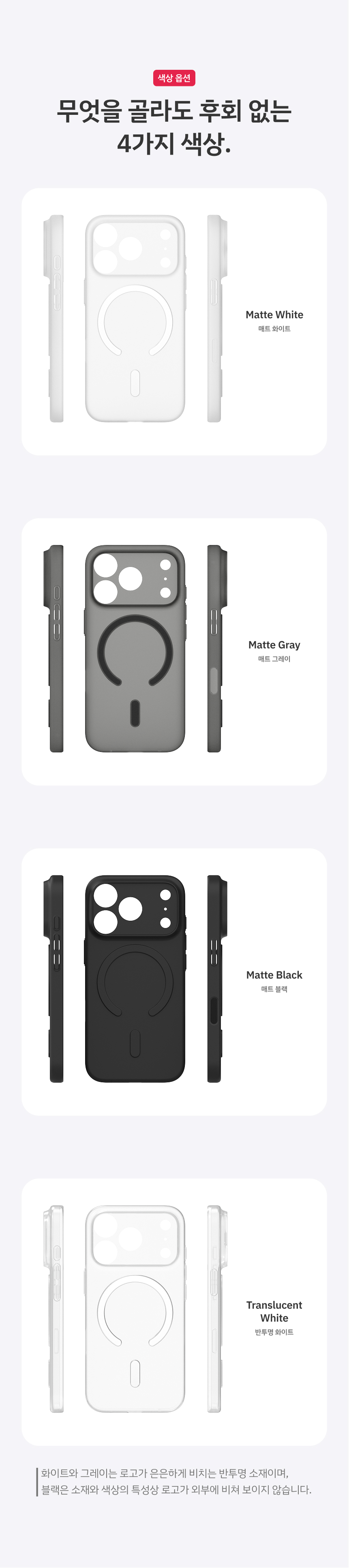 • 지문 방지: 고급스러운 매트 질감으로 부드러운 그립감과 깔끔한 지문방지 기능 제공