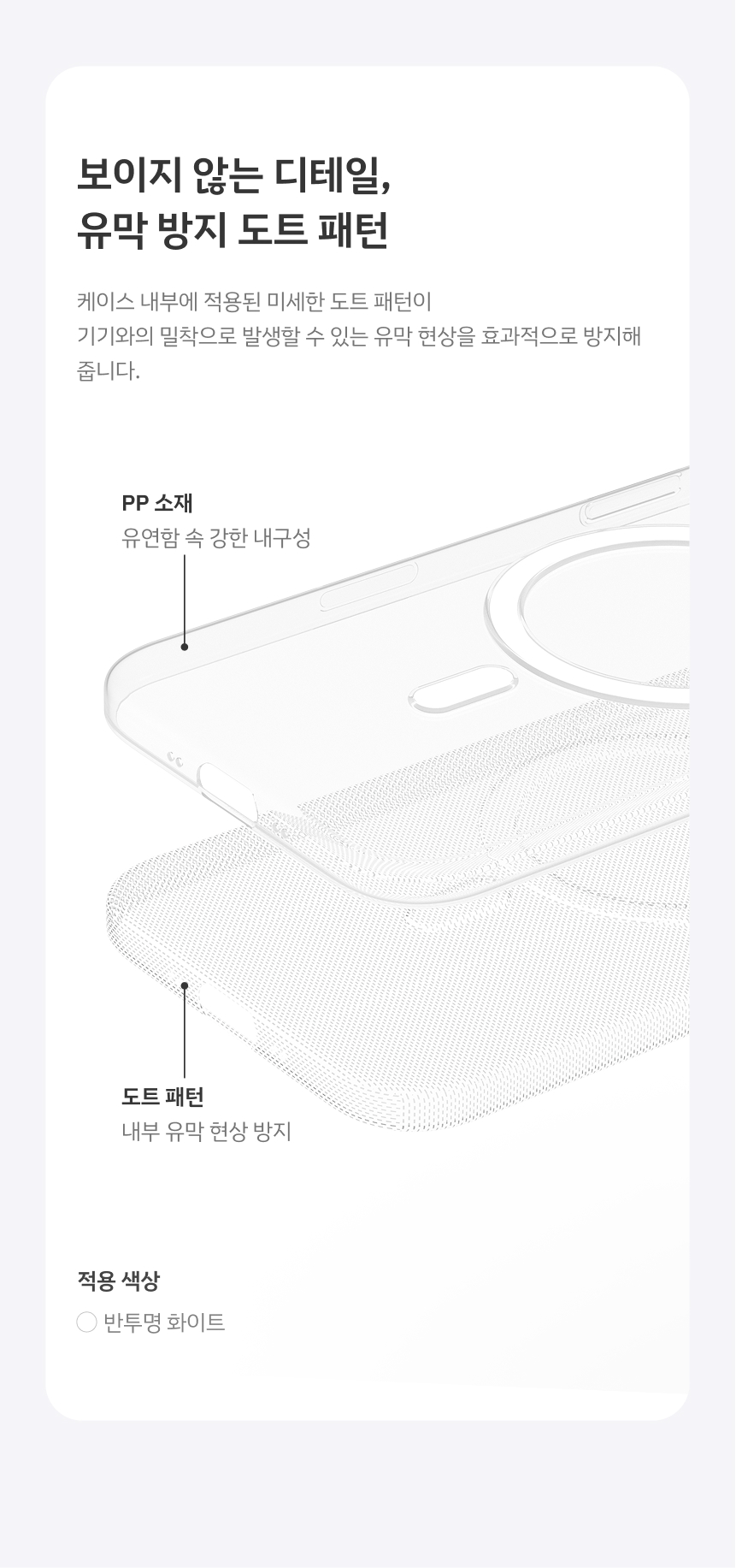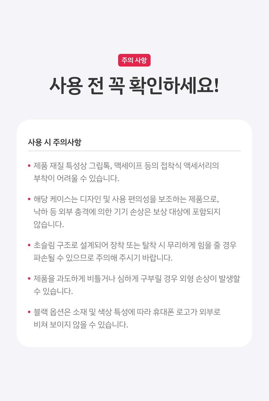 • 안정적인 무선 충전: 맥세이프 지원으로 케이스를 장착한 상태에서도 안정적이고 빠른 무선 충전이 가능