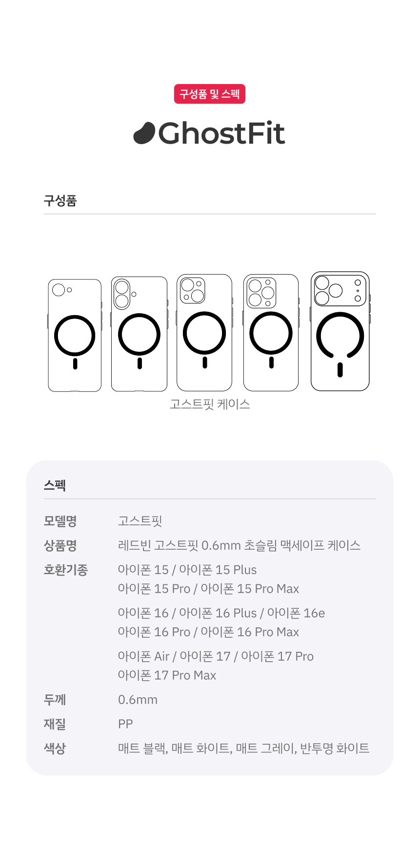 레드빈 고스트핏 0.6mm 초슬림 풀커버 핸드폰 맥세이프 케이스 아이폰17 16 15 프로맥스 프로 플러스 에어 e