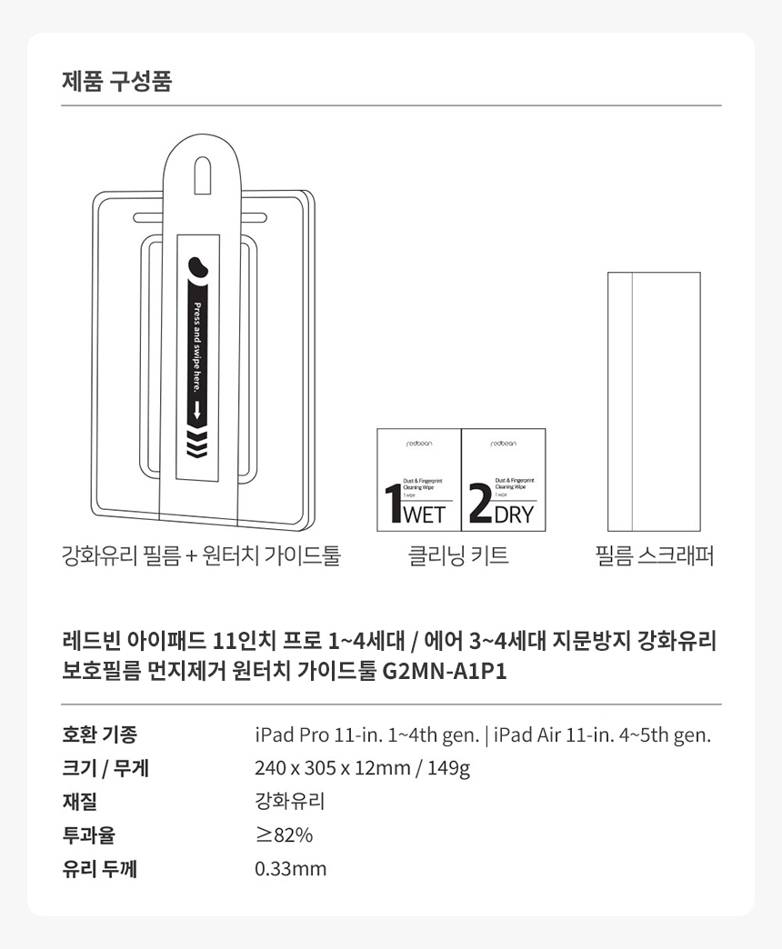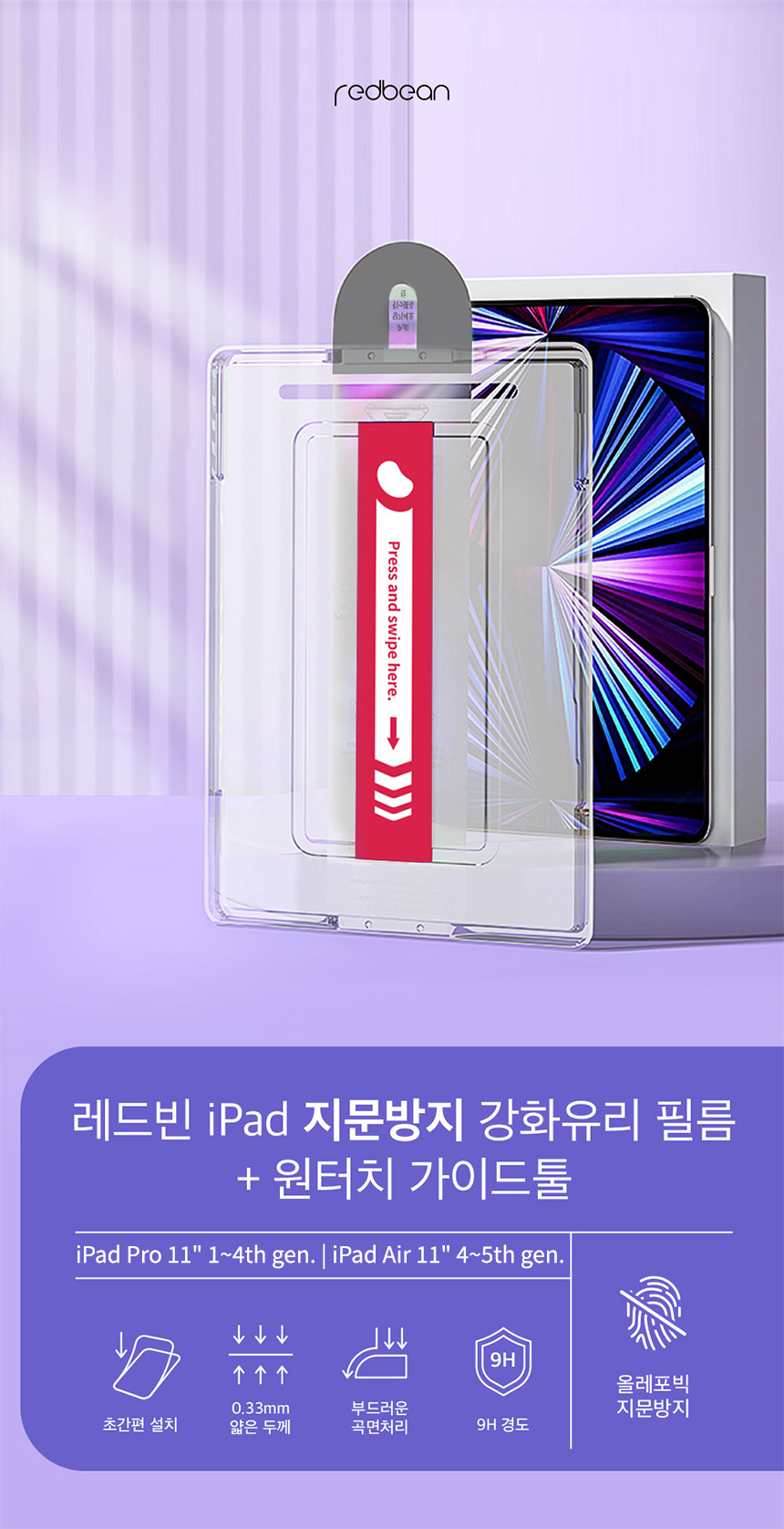 레드빈 아이패드 11인치 프로 1~4세대 / 에어 3~4세대 지문방지 강화유리 보호필름