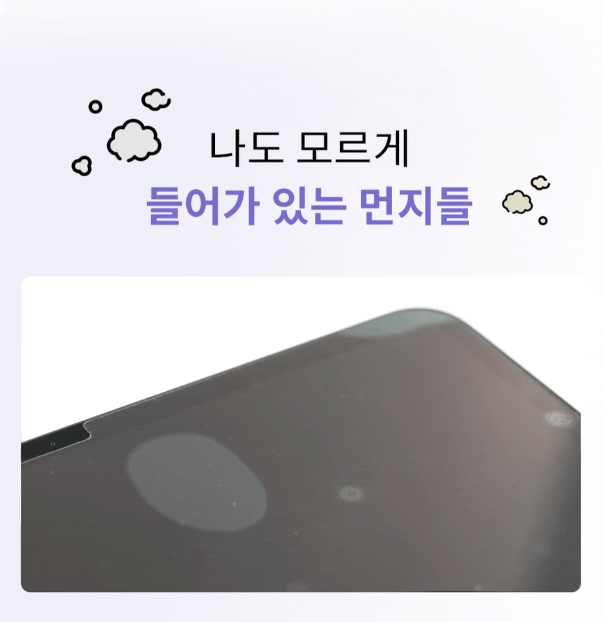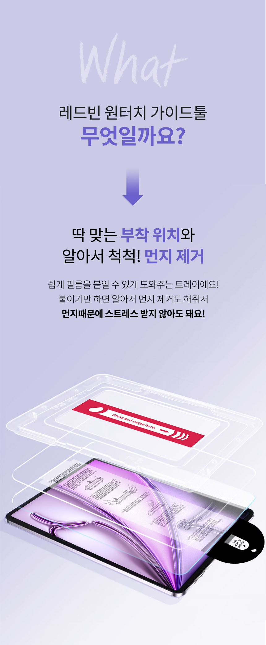 - 먼지제거와 필름부착을 한 번에! 원터치 가이드툴 제공