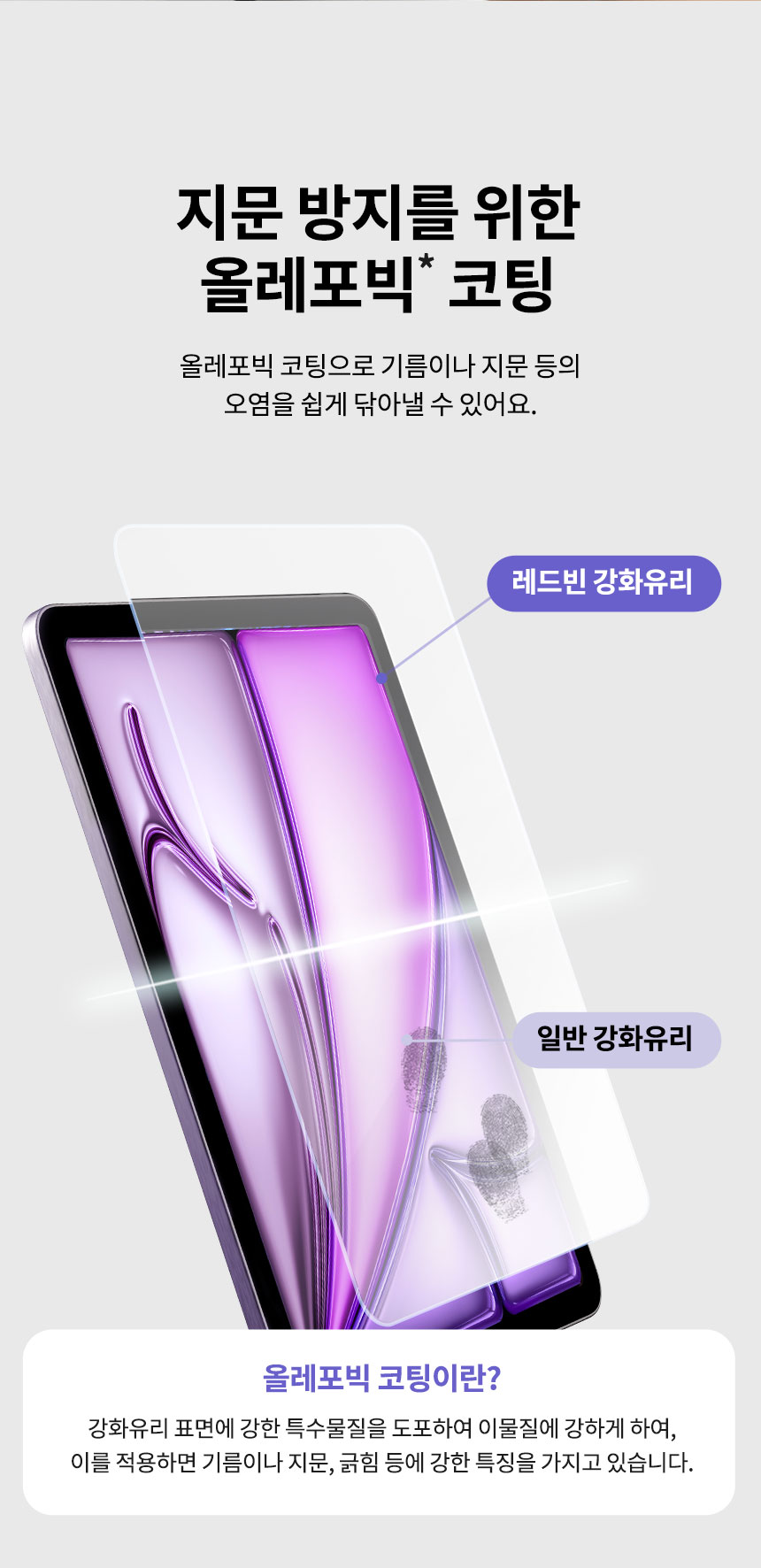 - 지문이나 이물질 방지에 효과적인 올레포빅 코팅