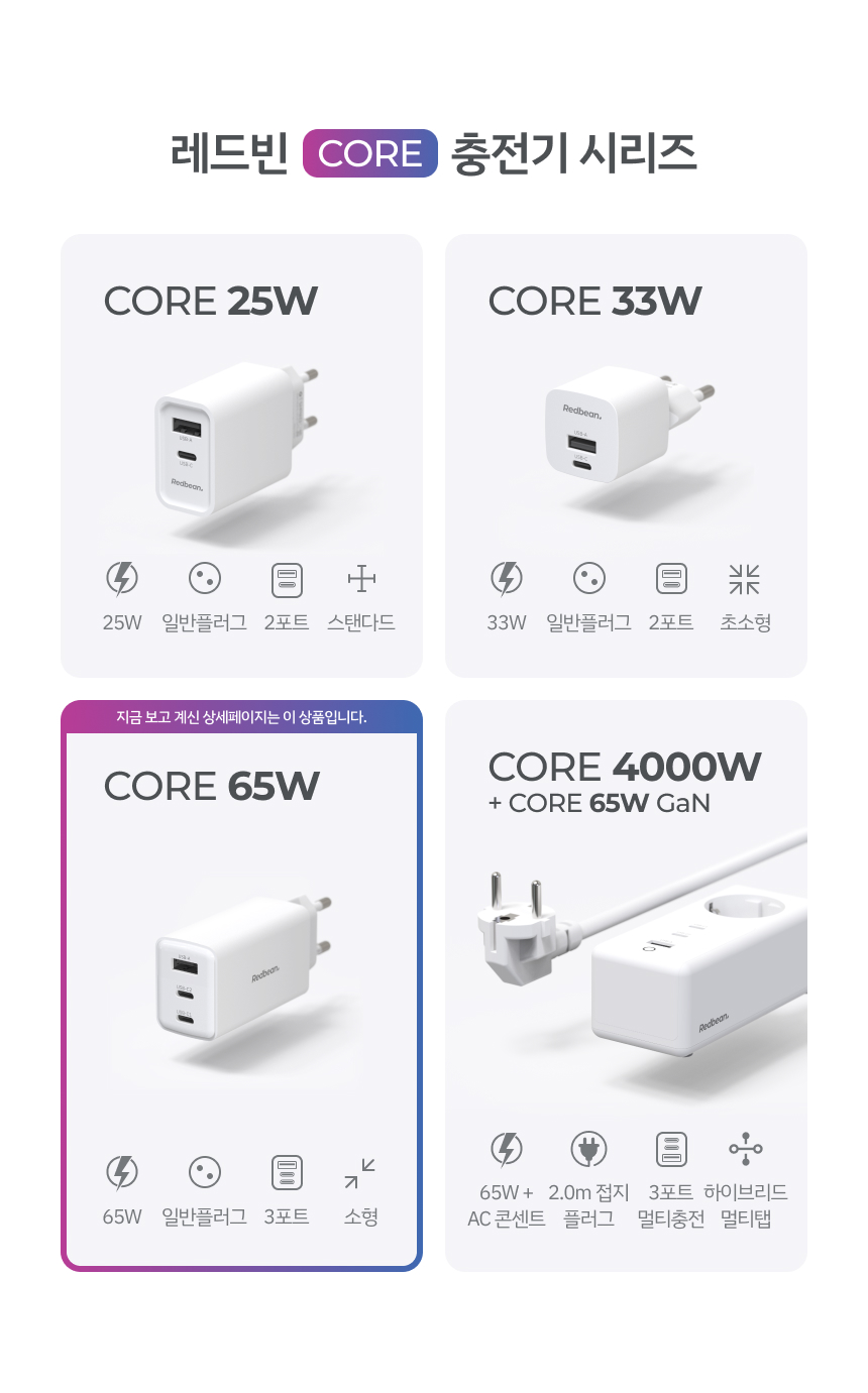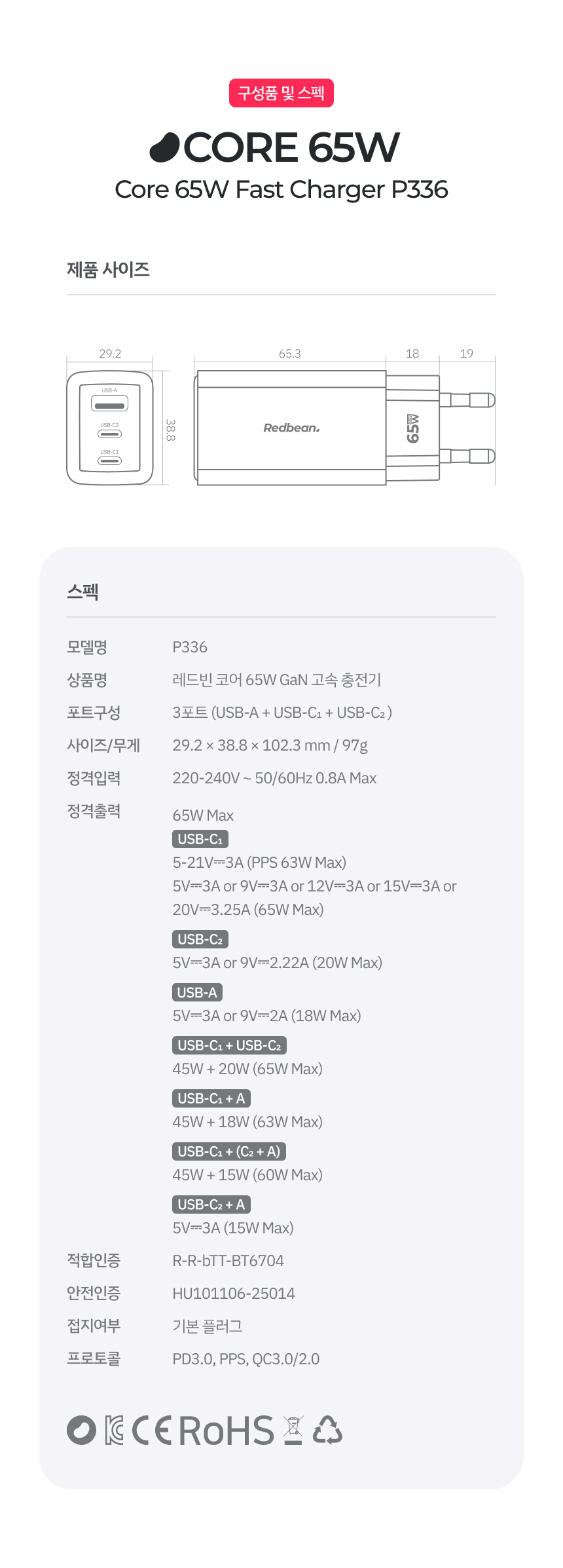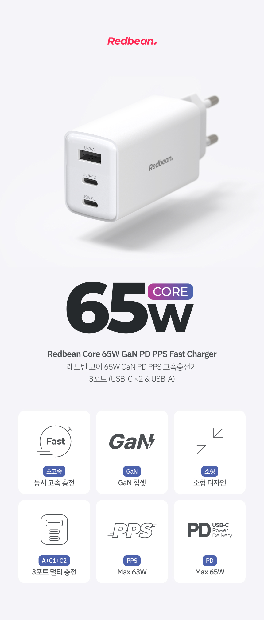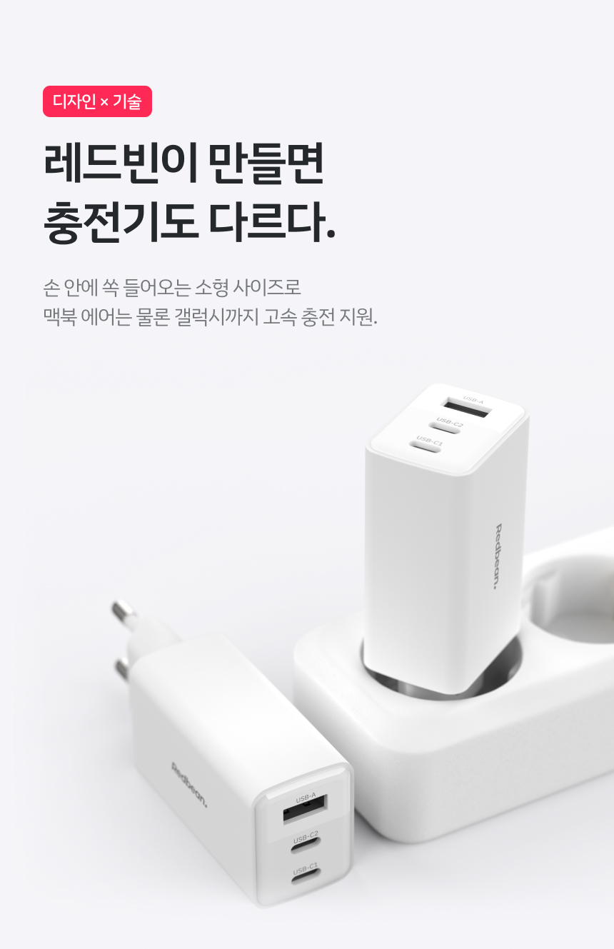 레드빈 코어 65W GaN 고속충전기 아이폰 갤럭시 아이패드 초고속충전기 RDP336