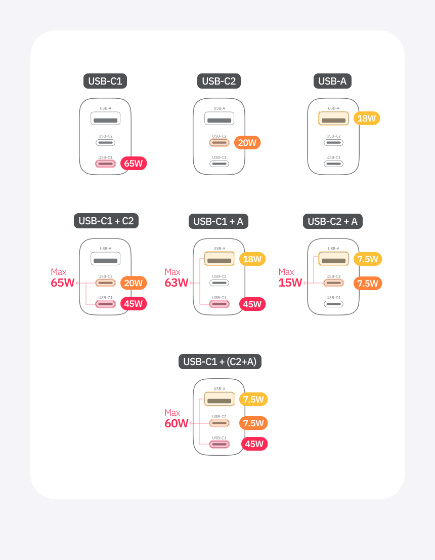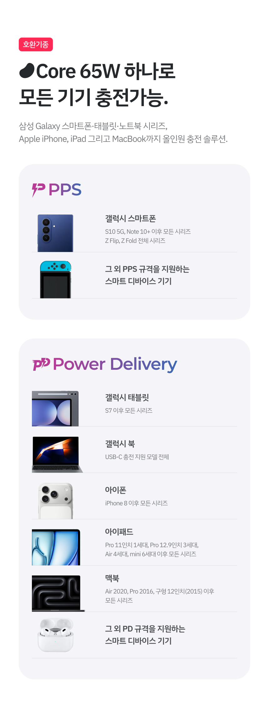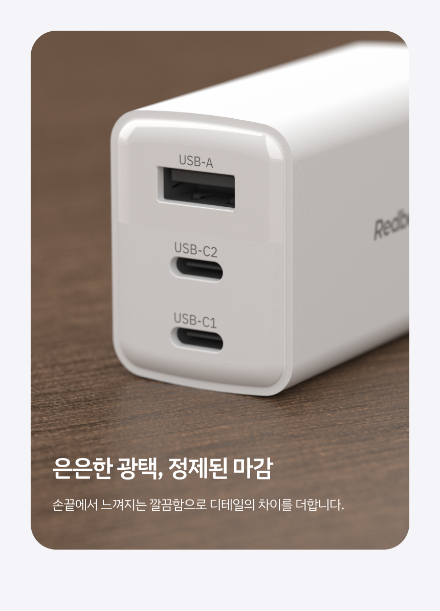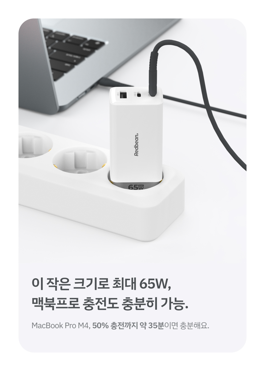 - 최대 65W 출력으로 노트북부터 스마트기기까지 빠른 충전 지원