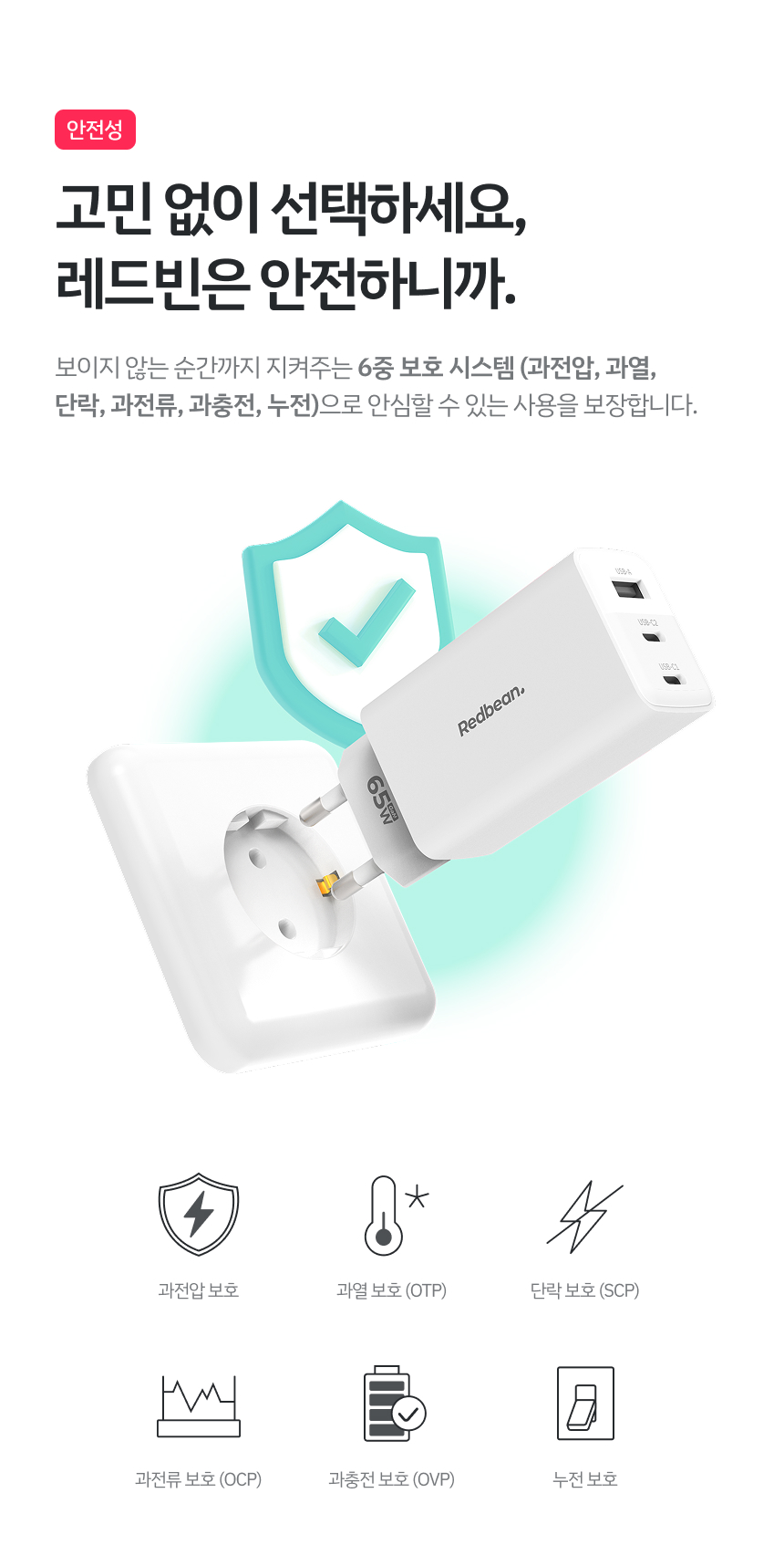 - 6중 보호 설계로 과전압·과열 등 안전하게 보호하는 안심 충전 지원