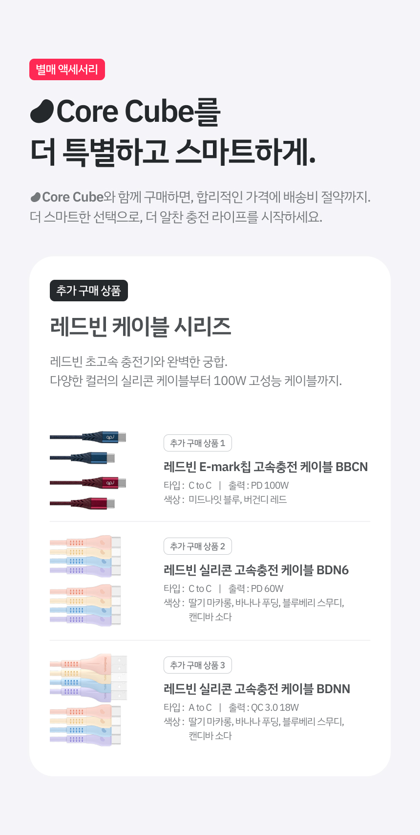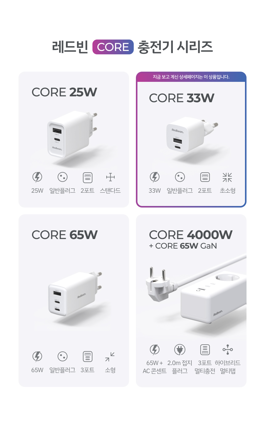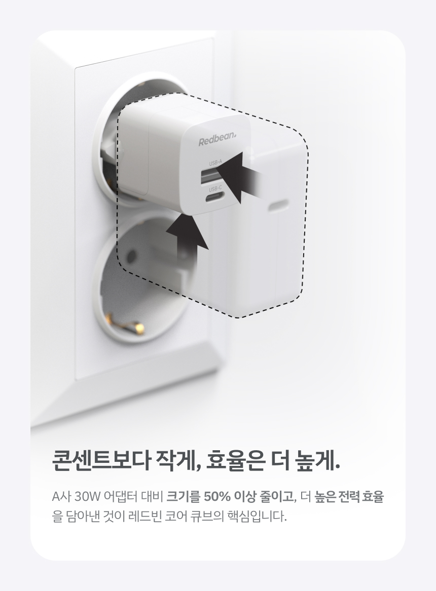 레드빈 코어큐브 33W GaN 초고속충전기 PD 아이폰 아이패드 고속충전기 RDP323