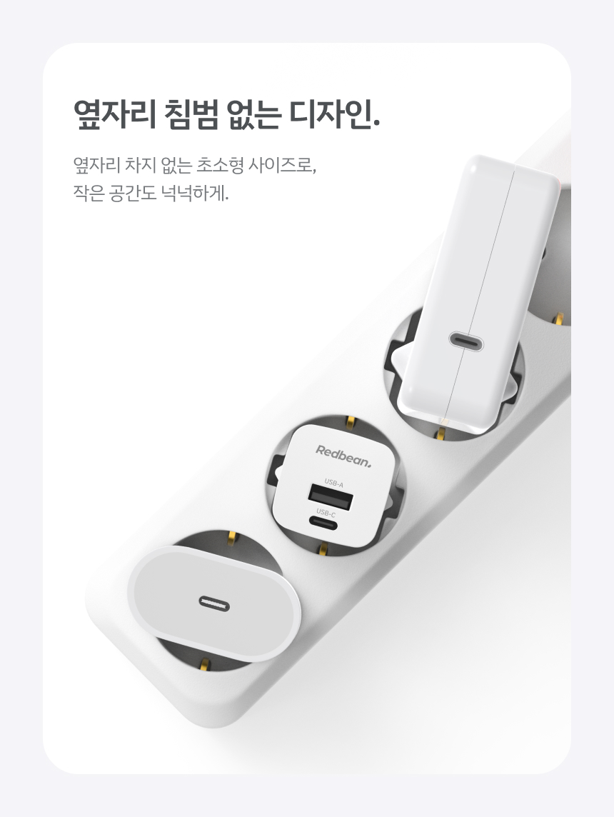 - 간섭 없는 슬림한 디자인으로 여러 콘센트에서도 깔끔하게 사용 가능