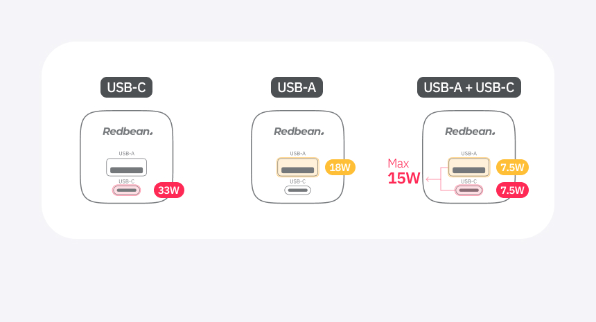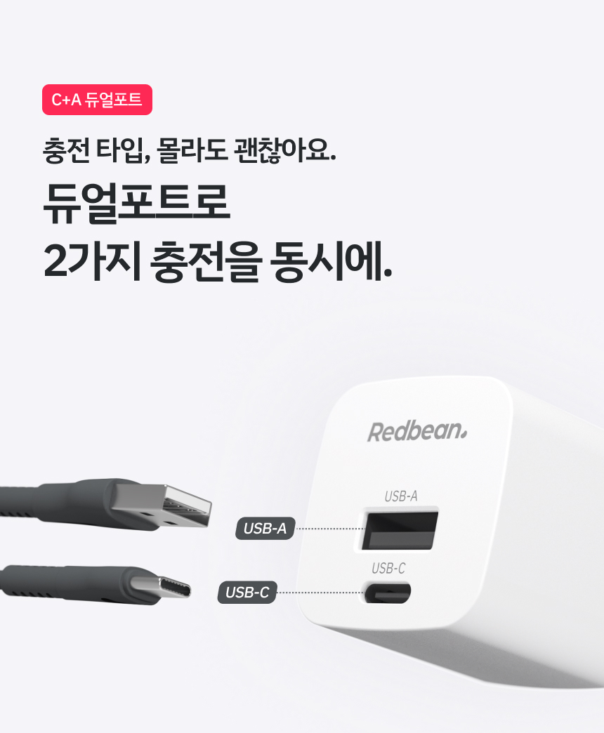 - 듀얼 포트 동시 충전으로 USB-C와 A 포트로 두 기기를 동시에 충전 가능