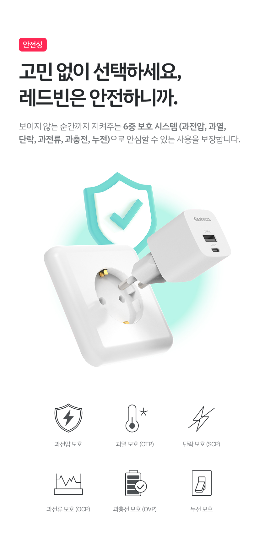 - 6중 보호 설계로 과전압·과열 등 안전하게 보호하는 안심 충전 지원