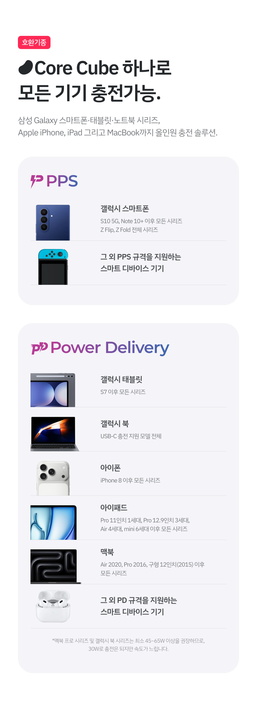 - PD/PPS 초고속 충전으로 다양한 기기에 안정적이고 효율적인 충전 제공