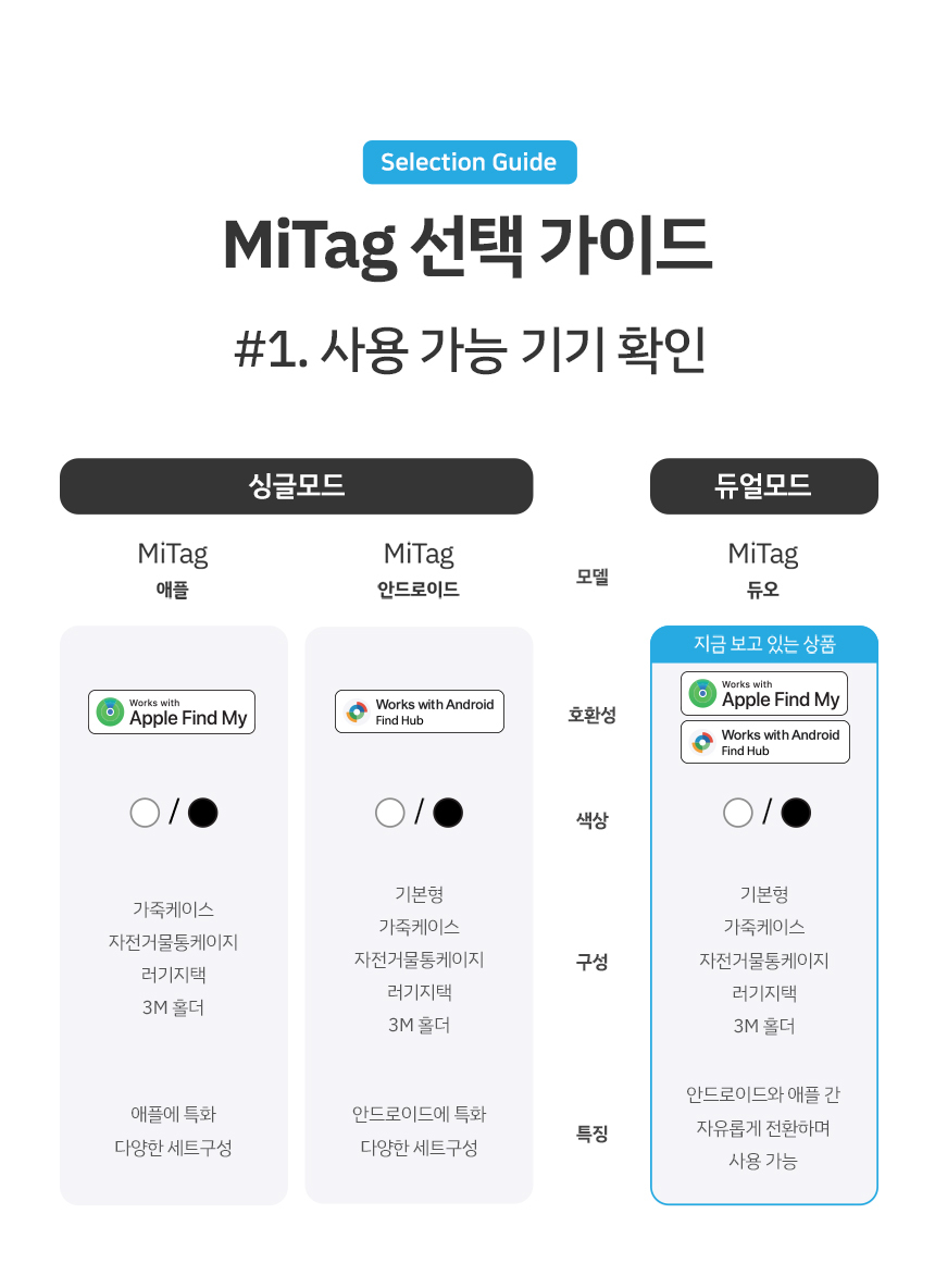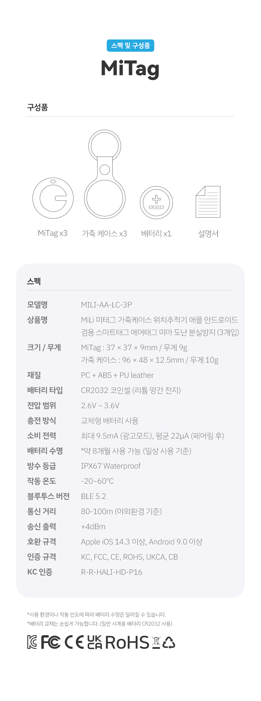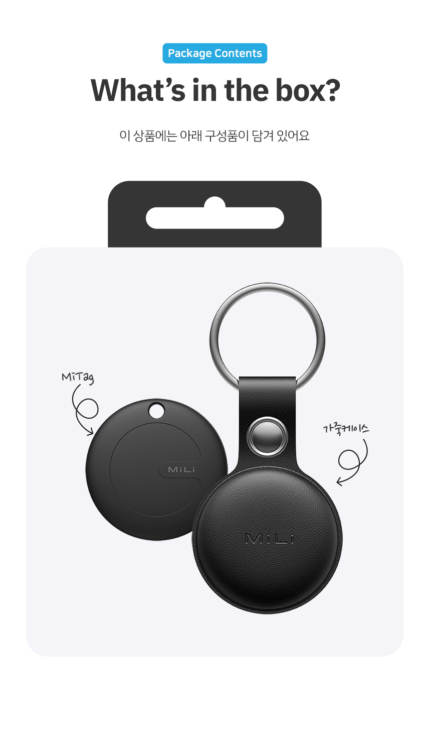 MiLi 스마트태그 위치추적기 듀얼모드 + 가죽케이스 (3개 세트) / MILI-AA-LC-3P