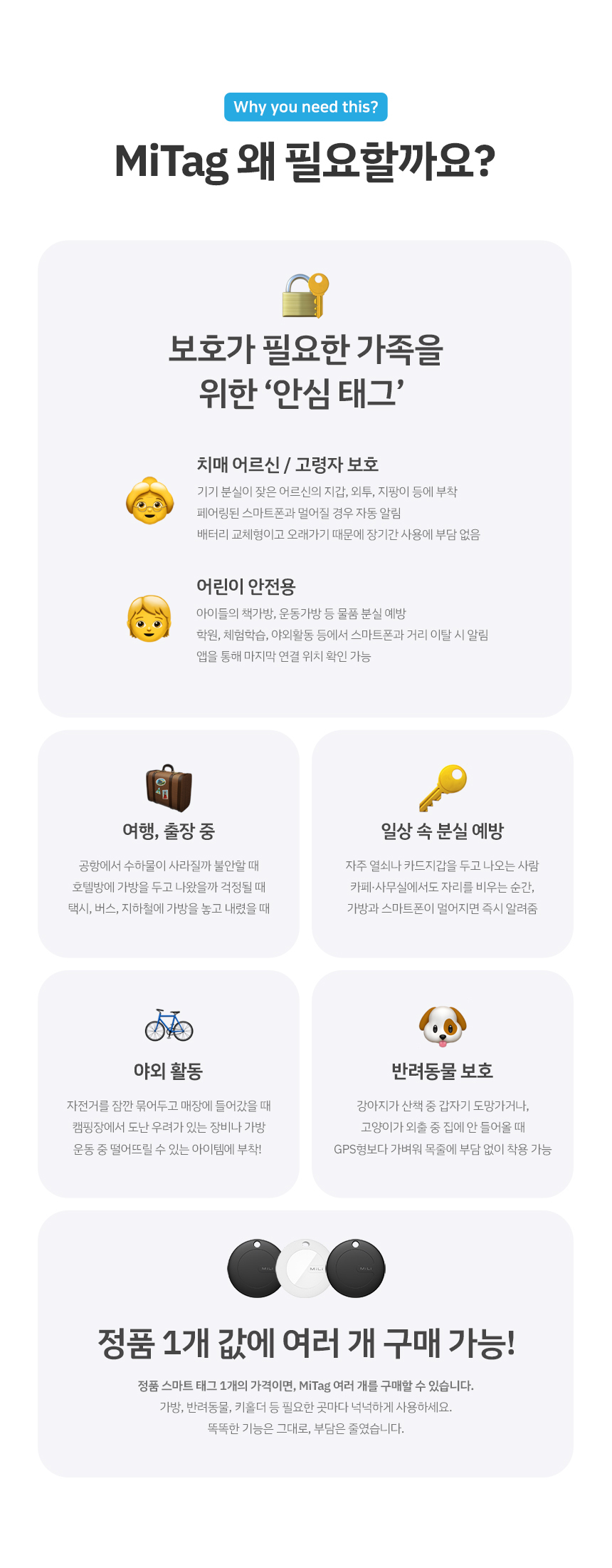 - 거리 이탈 시 즉시 경고 알림으로 분실 예방
