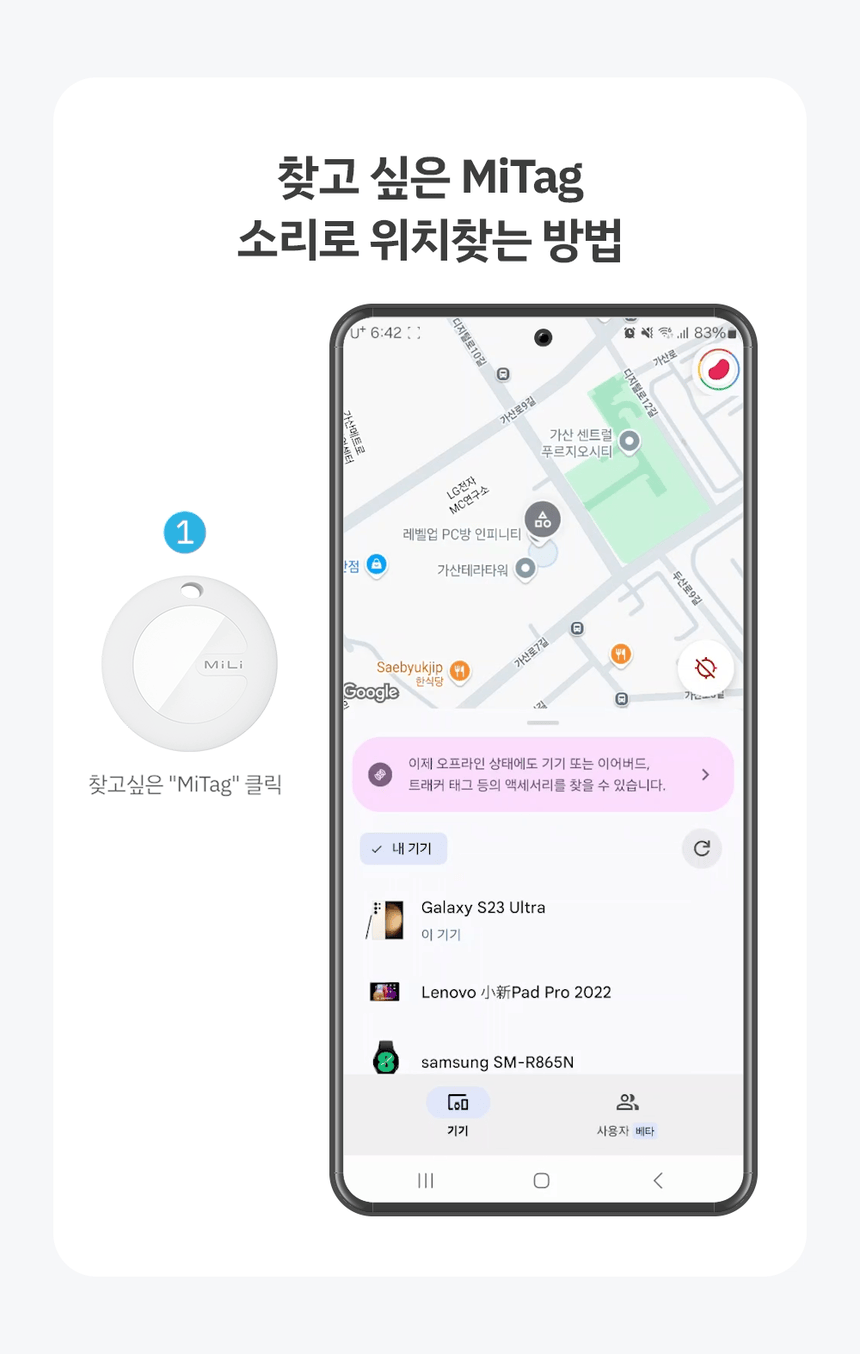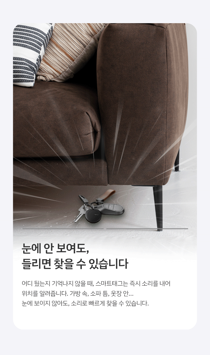 - 근처에 있을 땐 소리 알림으로 빠르게 찾기 가능