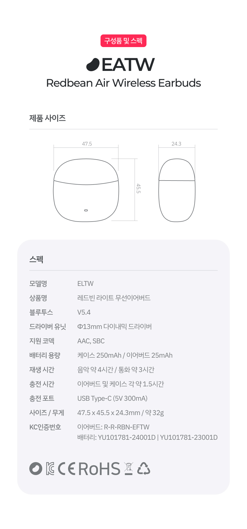 레드빈 블루투스 무선 이어폰 라이트 EFTW